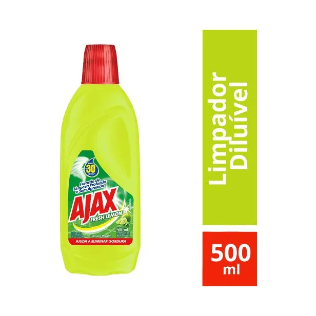 Furação de Limpeza Profunda e Sem Agressão - Ajuda a eliminar gordura Ajax Fresh Lemon Limpeza Pesada é indicado para limpeza geral de pisos, azulejos, vidros, cerâmicas e superfícies laváveis. Proporciona uma limpeza profunda sem agredir as superfícies e deixa sua casa com um agradável cheirinho de limpeza. Tem um rendimento incrível pois é diluível em água. Quer saber como usar? É fácil: É fácil: Dilua 2 tampas e meia do produto em 5 litros de água. Umedeça o pano e passe sobre as superfícies a serem limpas. Se a limpeza é pesada, pode-se utilizar puro com um pano úmido na remoção de manchas e sujeiras mais difíceis. 1L – Rende até 60 litros. 500ml – Rende até 30 litros.