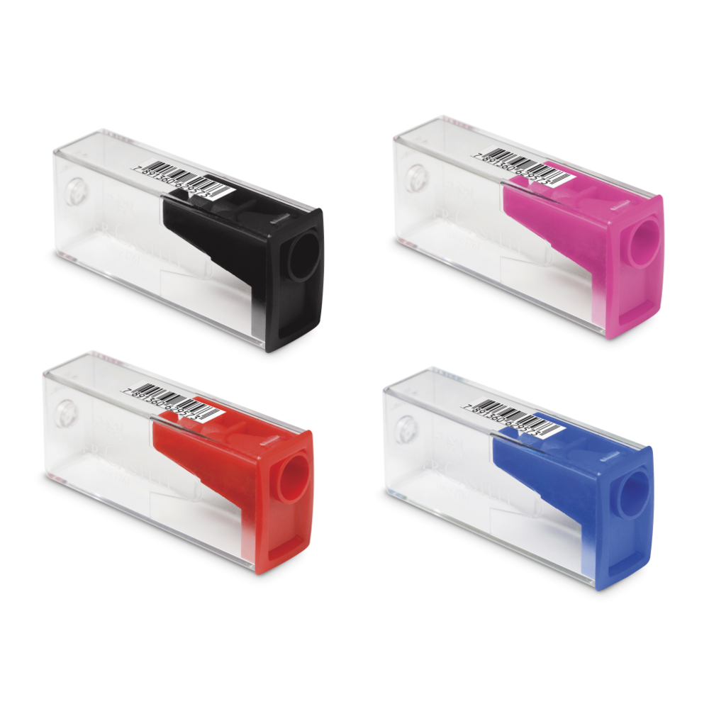 O apontador com depósito da Faber-Castell vem em um design exclusivo e básico, conta com depósito espaçoso para maior praticidade e lâmina de aço temperado, que garante maior facilidade ao apontar e maior durabilidade do produto.