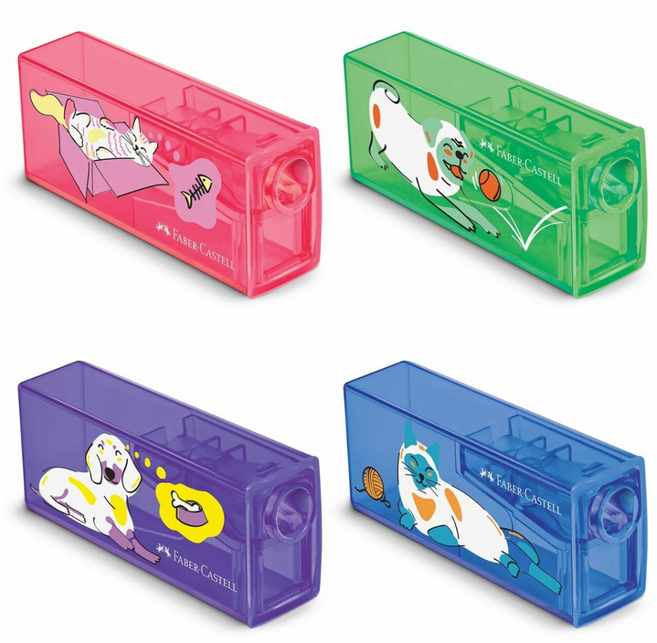 Perfeito para estudantes que desejam um apontador funcional e com um design divertido, ideal para o uso diário na escola. Adicione charme e praticidade ao seu material escolar com o Apontador com Depósito Pets Sortido da Faber-Castell!
