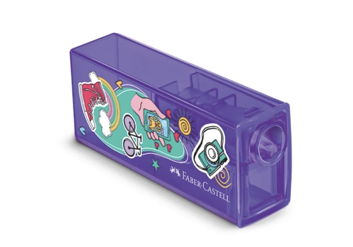 Apontador com depósito que garante maior praticidade e lâminas de aço temperado.