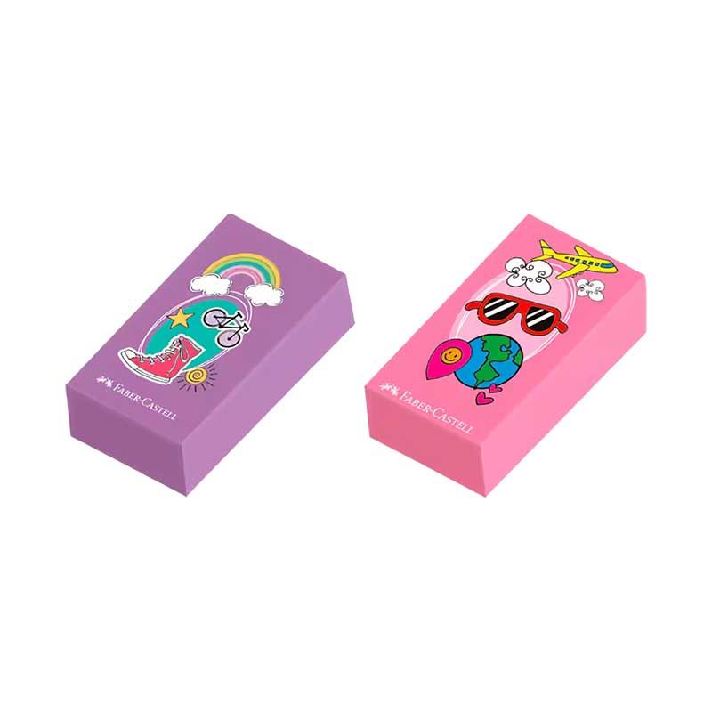 A família glimmer acaba de ficar maior! Um conceito que você já conhece, agora na categoria de borrachas. Coleção viagem: 2 estampas incríveis nas cores rosa e roxo, para deixar seu material com a sua cara. Com formulação de alta qualidade e livre de PVC as borrachas são super macias e possuem um excelente desempenho ao apagar, além de serem colecionáveis.
