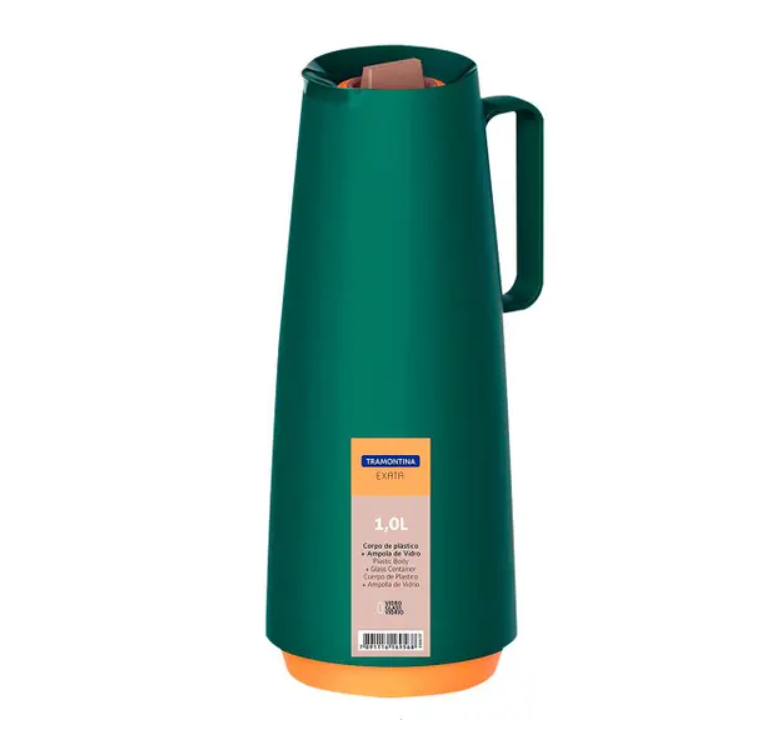 Para garantir praticidade para seu dia e manter suas bebidas na temperatura ideal, o bule térmico Tramontina Exata em plástico verde com ampola de vidro 1 litro é indispensável. Ideal para levar pro trabalho, escola ou manter na sua cozinha, ele pode ser utilizado em líquidos quentes e frios, pois tem ampola de vidro especial. Sua utilização é primorosa e graças a sua abertura em estilo rolha, tem o direcionamento ideal das bebidas. O bule ainda é produzido em plástico, tem um cor especial que deixa seu dia a dia muito mais especial e selo IF Design, que atesta toda a qualidade que você merece!