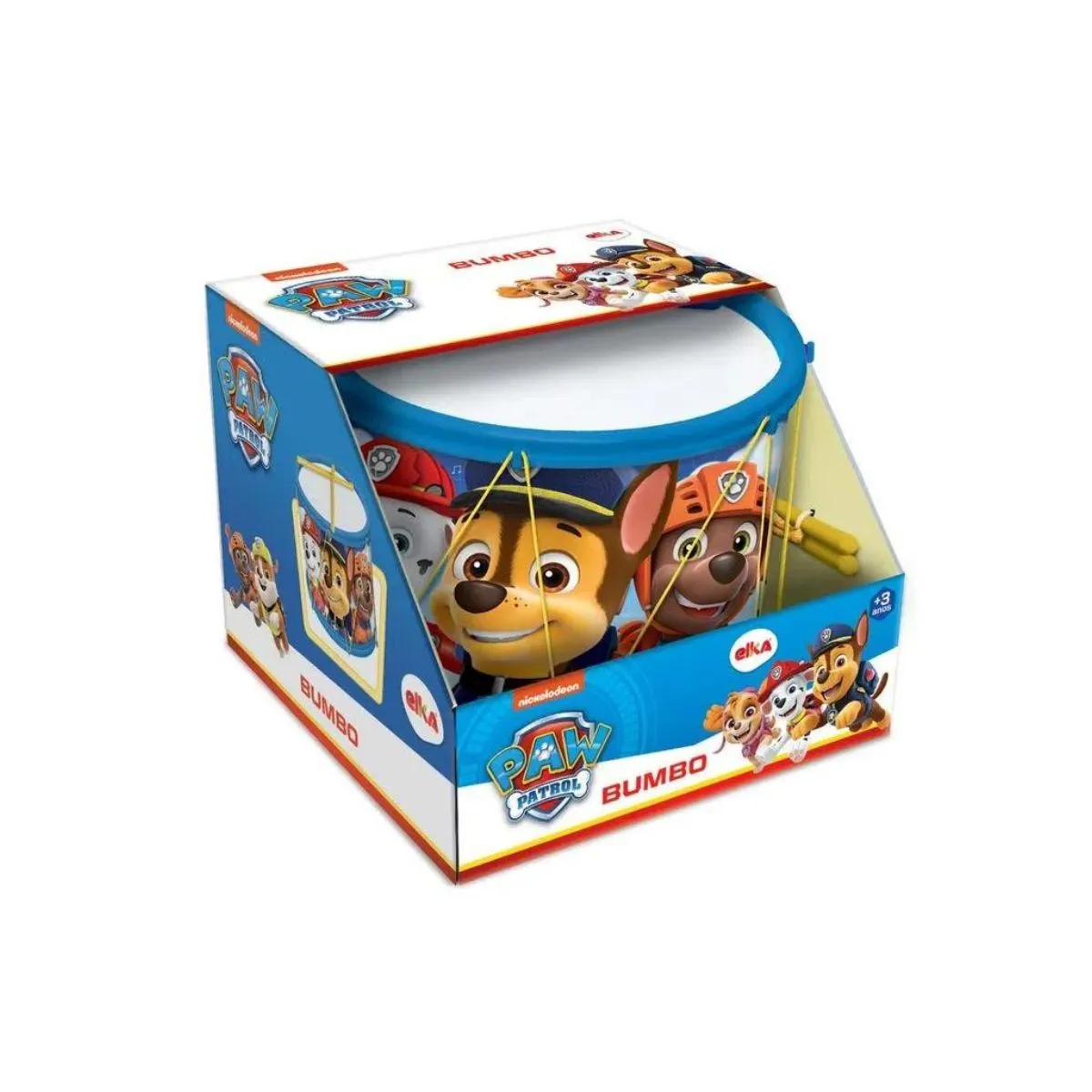 Bumbo com 2 baquetas da Patrulha Canina. Adequado para crianças pequenas.