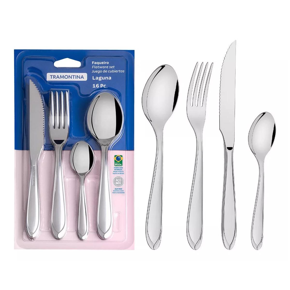 O Faqueiro para Churrasco Tramontina em Aço Inox 16 Peças da Linha Laguna é o que faltava na sua cozinha. Perfeito para serem usados diariamente, as 16 peças combinam com qualquer ambiente e em diferentes momentos. Os talheres são totalmente produzidos em aço inox com um charmoso acabamento em brilho. Eles deixam sua mesa mais bonita devido aos detalhes no cabo. As colheres que acompanham o faqueiro possuem bojo em formato simétrico e bordas cuidadosamente arredondadas. Os garfos possuem dentes polidos na parte interna, com formato apropriado para a boca e bordas arredondadas, proporcionando maior conforto no uso. As facas são temperadas, característica que garante maior durabilidade no fio de corte e maior resistência à corrosão. Além disso, não riscam as porcelanas. O faqueiro também possui facas projetadas especialmente para churrasco, tornando esse momento ainda mais gostoso. São produtos muito úteis e versáteis para sua cozinha, que ainda facilitam na hora de lavar. Podem ser usados diariamente na máquina de lavar louças.