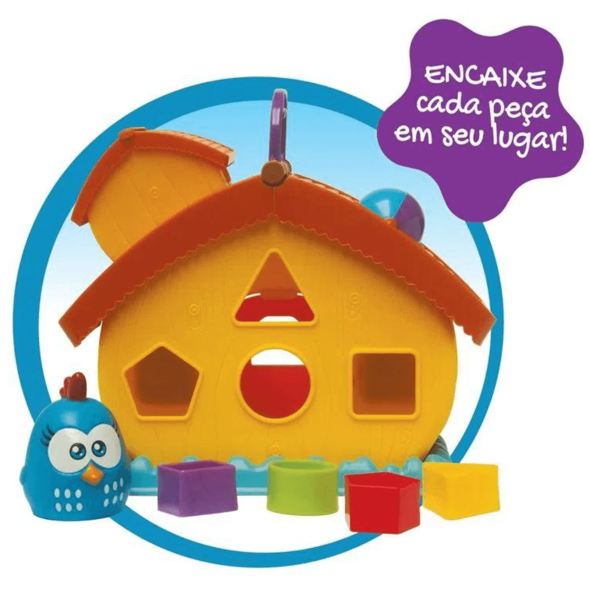 Mini Fazendinha da Galinha Pintadinha com um monte de atividades! Gire a chave e abra a portinha. Janelinha com surpresa. Levante o telhado para guardar as peças. Bolinha gira-gira. Peças com forma geométricas para encaixar. Boneco para brincar.