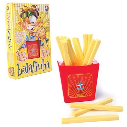 Coloque todas as batatinhas fritas dentro do saquinho. Comece a tirar uma a uma... Se você puxar a batatinha errada, todas as outras pulam também! Junte os amigos e faça rodadas para ver quem consegue ficar mais tempo sem deixar a batatinha pular! Contém na embalagem: 20 batatinhas e 1 pacotinho de batatas.