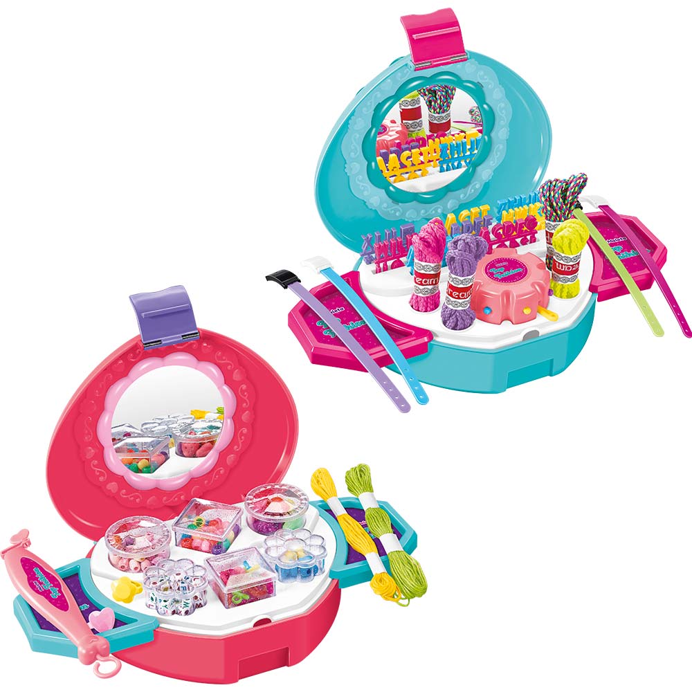 Faça lindas Bijuterias com a Maleta Top Fashion! Sortido em 2 modelos, faça diversos tipos de pulseiras para incrementar o seu visual! Acompanha uma ferramenta para confeccionar as pulseiras e diversos acessórios para personaliza-las! Com alça, a maleta é perfeita para levar suas pulseiras para onde quiser!