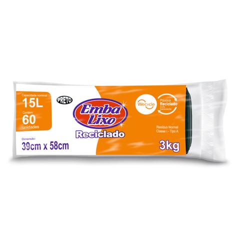 O saco para lixo preto 15l embalixo com 60 unidades, é reciclado, fabricado com economia circular.